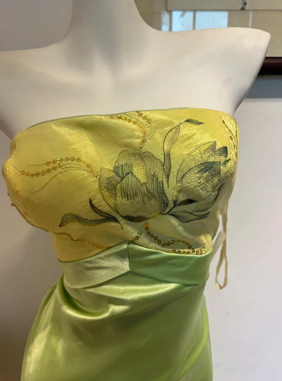 Strapless Sequins Satin Green Gown any accessories in the pictures are not included, Dressing occasion:evening events, proms, wedding, or other formal gatherings