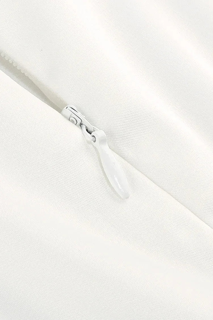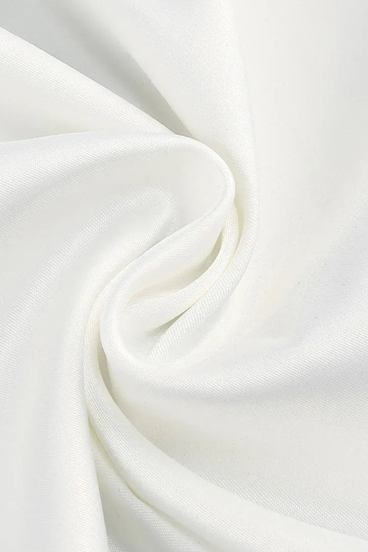Elegant Ivory Evening Dress features a form-fitting mermaid silhouette, a scoop neckline, and a sleek satin fabric that drapes smoothly to flatter the figure. The standout keyhole back adds modern allure, while the floor-length skirt flares gently for subtle drama.