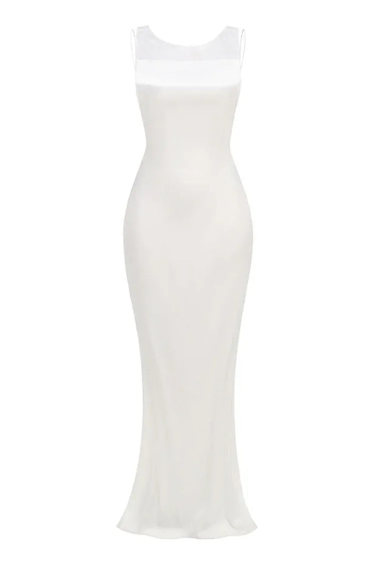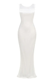 Elegant Mermaid Scoop-Neck Sleeveless Keyhole-Back Satin Ivory Floor-Length Evening Dress for Women - US 2 / UK 6 / EU 32