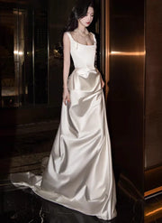 Square Neck Satin White Floor Length Gown any accessories in the pictures are not included, Dressing occasion:evening events, proms, wedding, or other formal gatherings