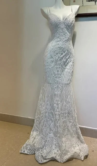 Mermaid Spaghetti Strap Applique Beaded White Prom Dress Evening Dress - US 2 / UK 6 / EU 32