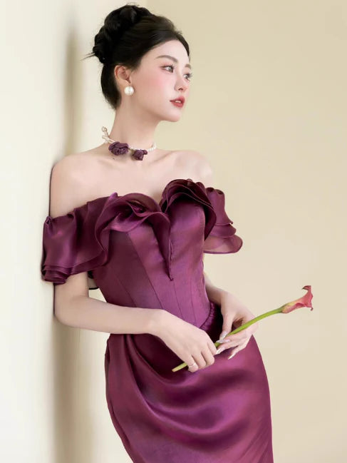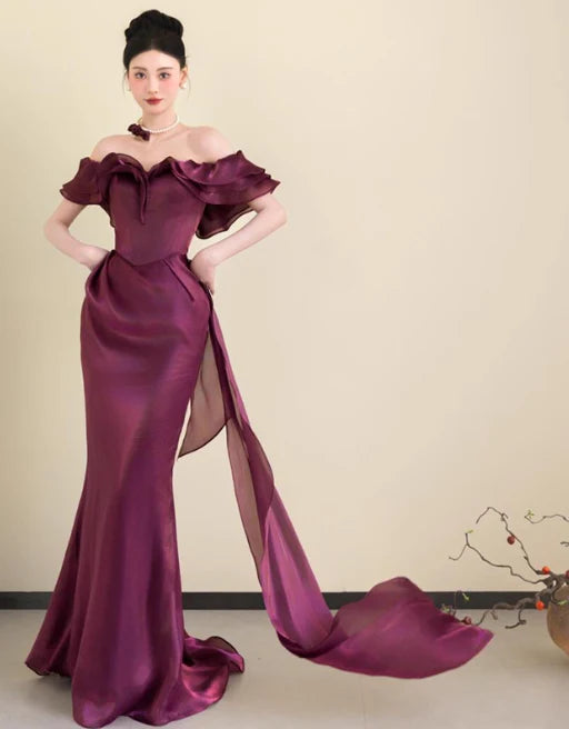 Mermaid Satin Grape Long Gown any accessories in the pictures are not included, Dressing occasion:evening events, proms, wedding, or other formal gatherings