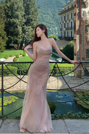 Pretty Sheath Halter Neck Backless Tulle Light Pink Evening Dresses is a dreamy choice. It features a sheath silhouette that hugs the body elegantly, a halter neckline for a chic look, and a backless design with a delicate bow for added allure. Crafted from airy tulle in a soft light pink hue, it exudes romance.
