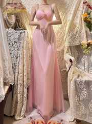 Embrace soft glamour with this Pink Mermaid Party Dress—a romantic showstopper crafted for special moments. Its V-neckline is framed by beaded spaghetti straps, while a 3D floral embellishment centers the ruched bodice for tactile charm. The double tulle fabric hugs curves in a mermaid silhouette, flowing into a floor-length skirt that sways gracefully with movement—balancing elegance and effortless comfort.