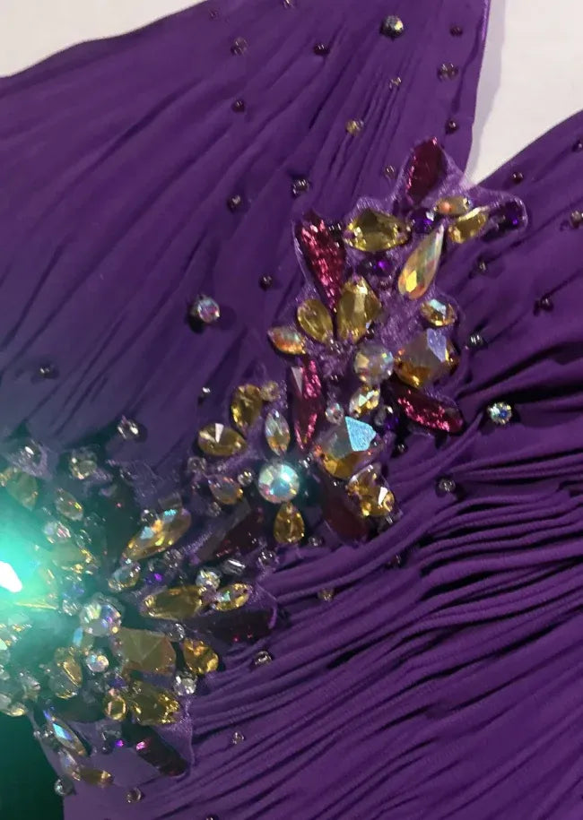 Glamorous Mermaid One-Shoulder Sleeveless Beaded Purple Maxi Prom Dress for Women Custom - US 2 / UK 6 / EU 32